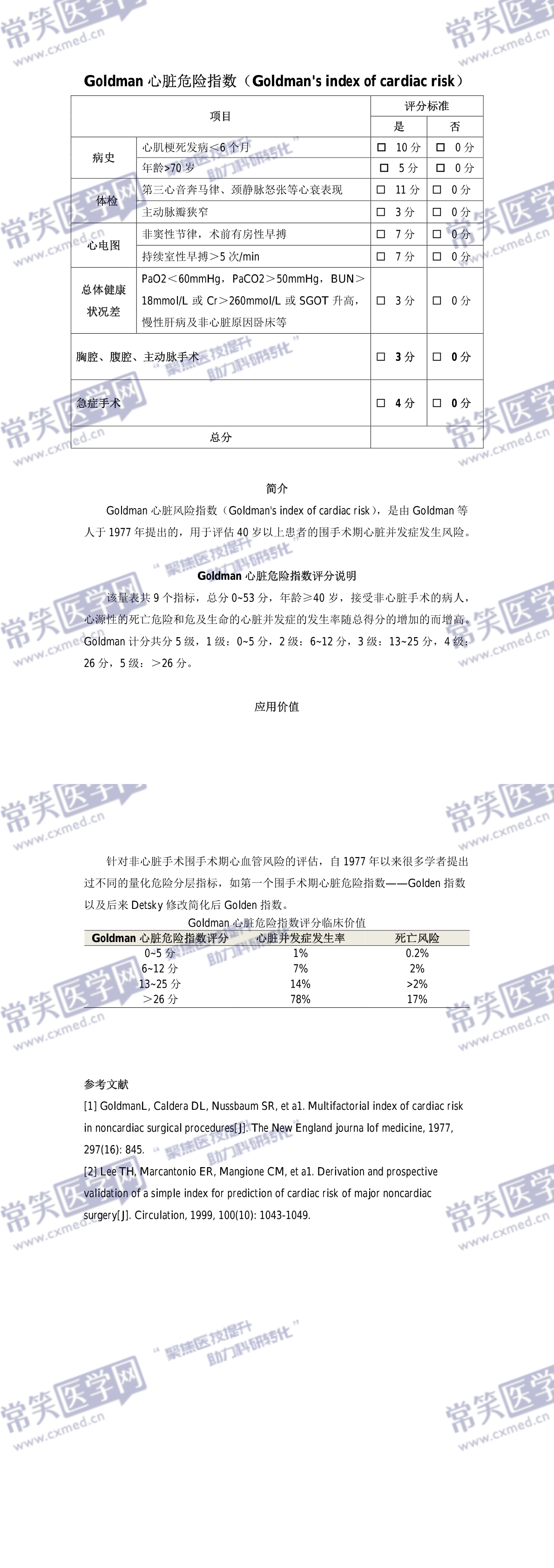 Goldman心脏危险指数