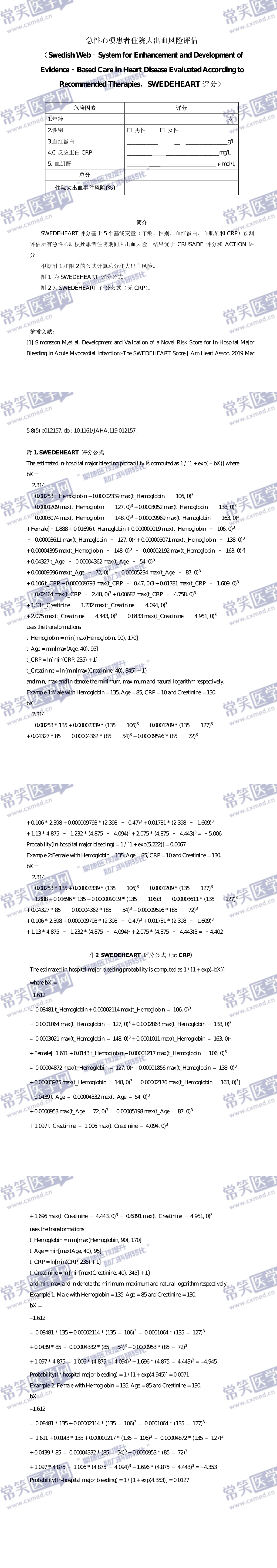 急性心梗患者住院大出血风险评估